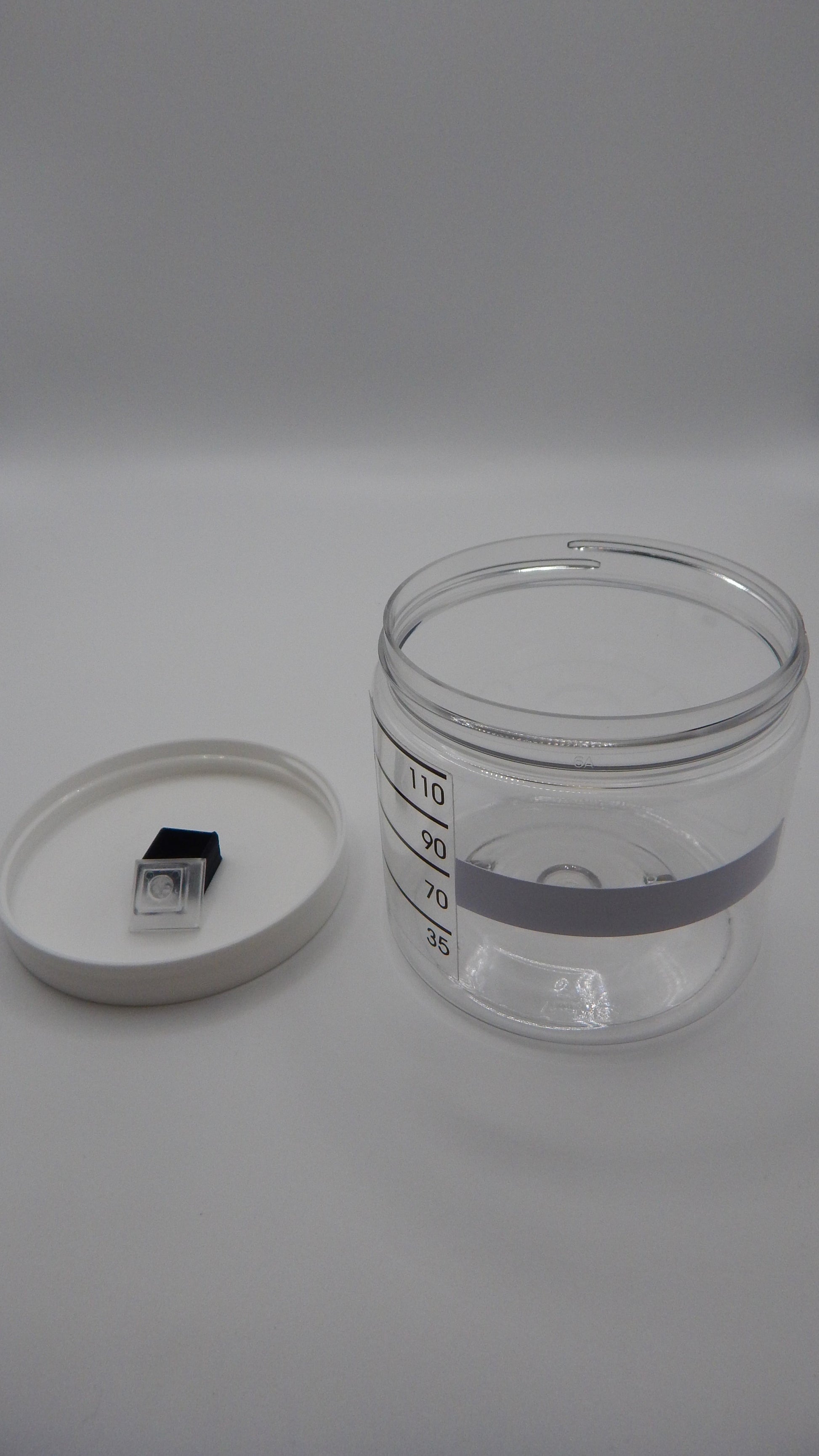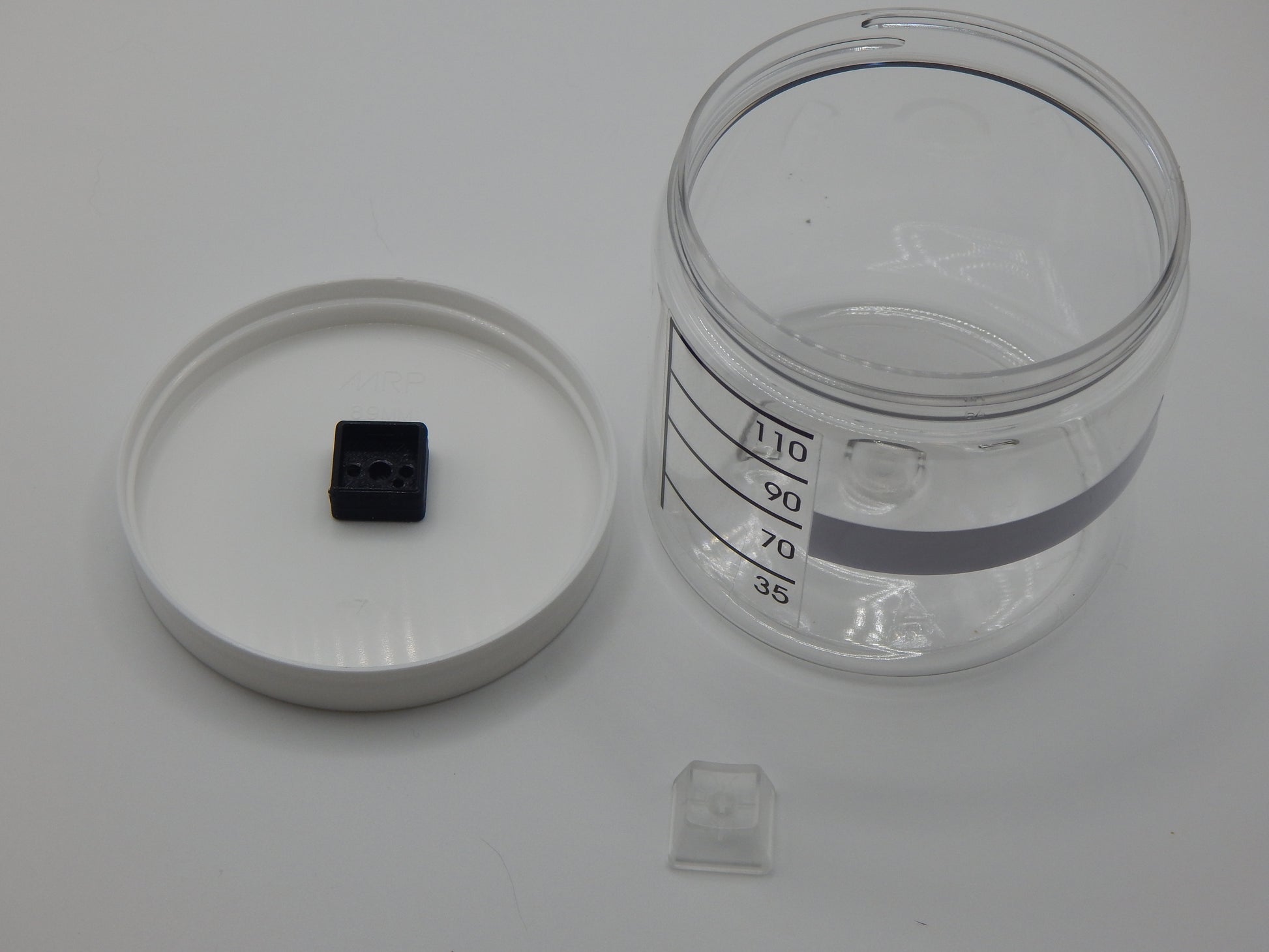 The standard container can hold up to 110 switches, includes a switch socket on the lid, a blank key cap, a gauge, and a dry erase sticker for cataloging the contents.