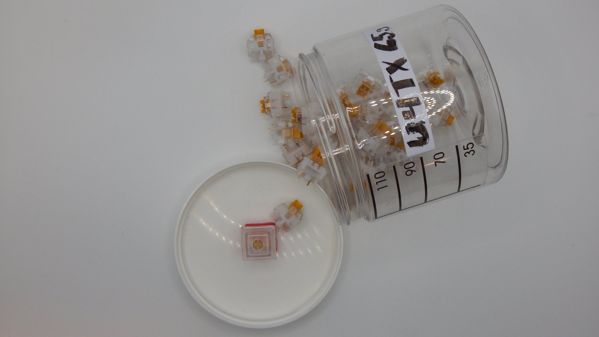 Kittko ContainersIn house developed containers for switches, keycaps, and cables that include a blank keycap and switch socket tester on every lid!